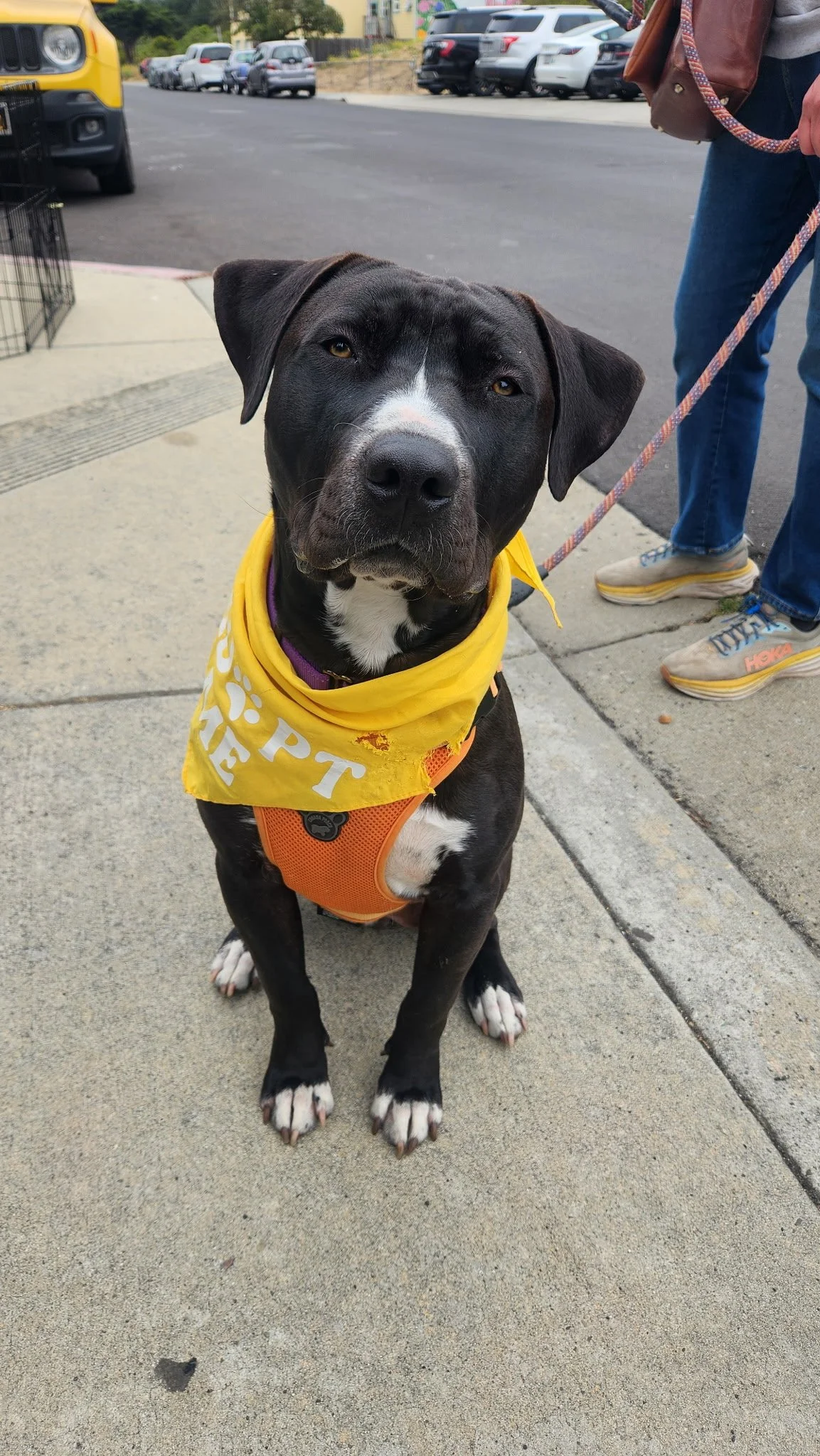 is 1.5–2 years, pit bull mix. He is your classic beach-loving, tail-wagging heartthrob! He’s a social butterfly—great with dogs, fantastic with people, and always down for a good time. Whether it's a long walk on the beach or a game of zoomies in the yard, Rufus brings the party.