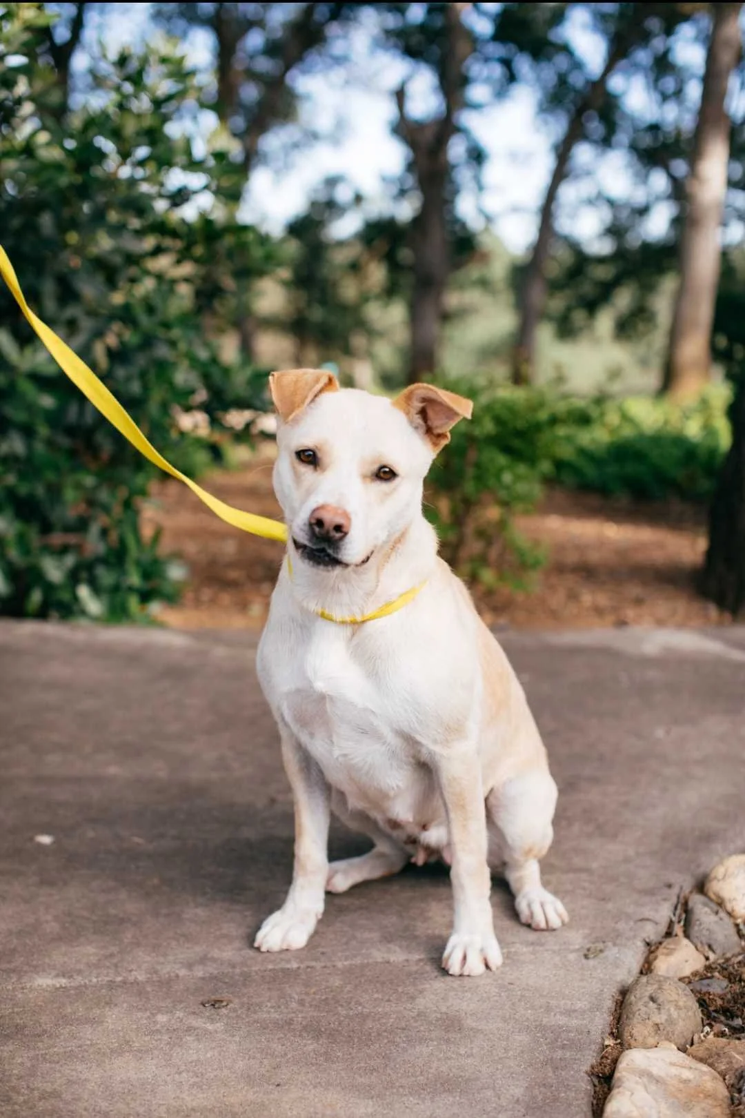 Demi is a beautiful blonde Labrador with a bright spirit and a zest for life. At around 65 pounds, she’s the perfect mix of athletic and affectionate. She’s the kind of dog who wakes up ready to roll—whether that means a hike, a walk around the neighborhood, or a good play session with her dog friends.
