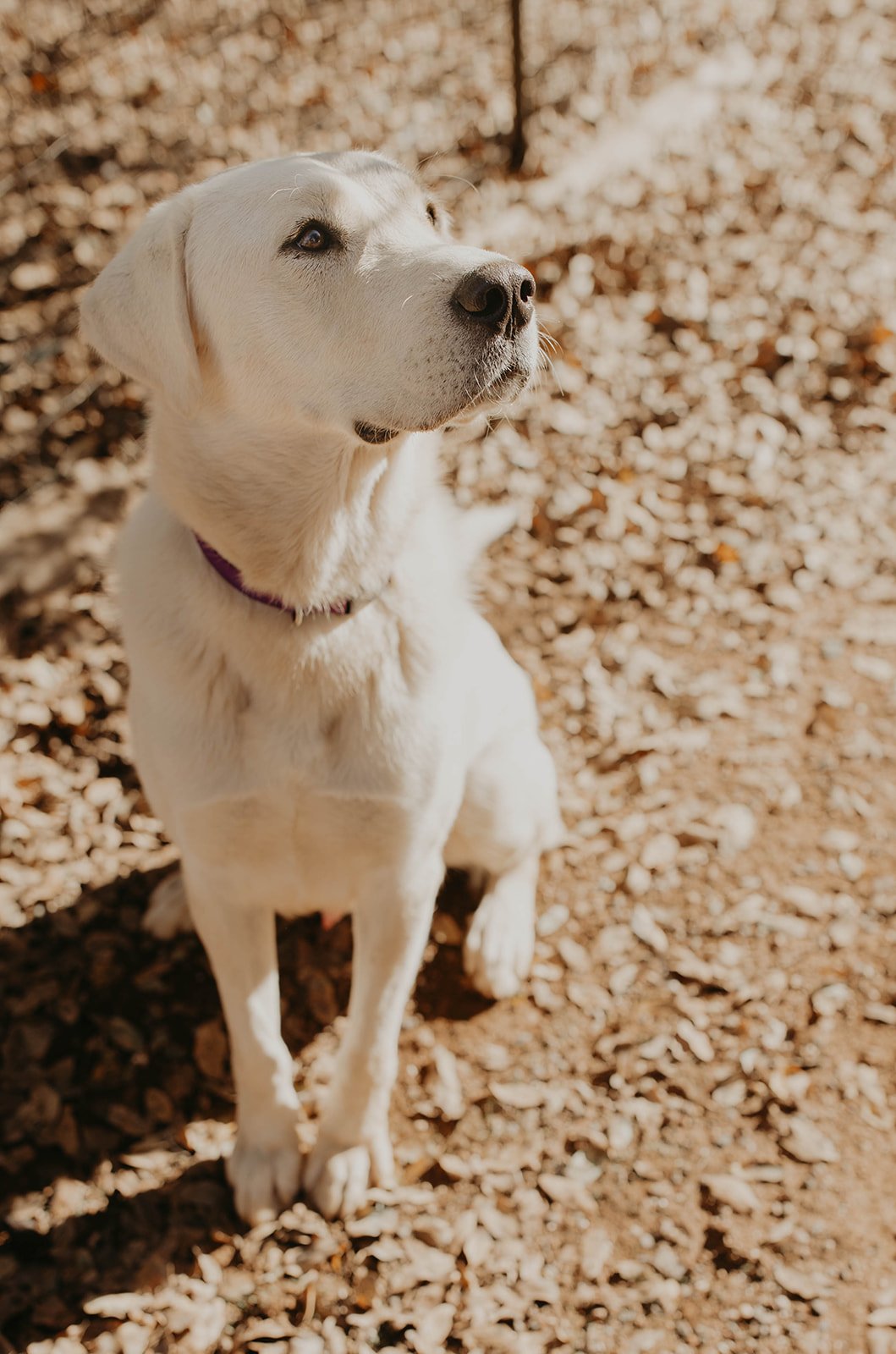 Standing over five feet tall on his hind legs and weighing about 85 lbs, he might look like a giant yellow Lab, but there’s something uniquely special about him (and it’s not just his size!). Nico loves people and wants nothing more than to be close to them—sometimes a little too close, as he thinks he’s a lap dog.