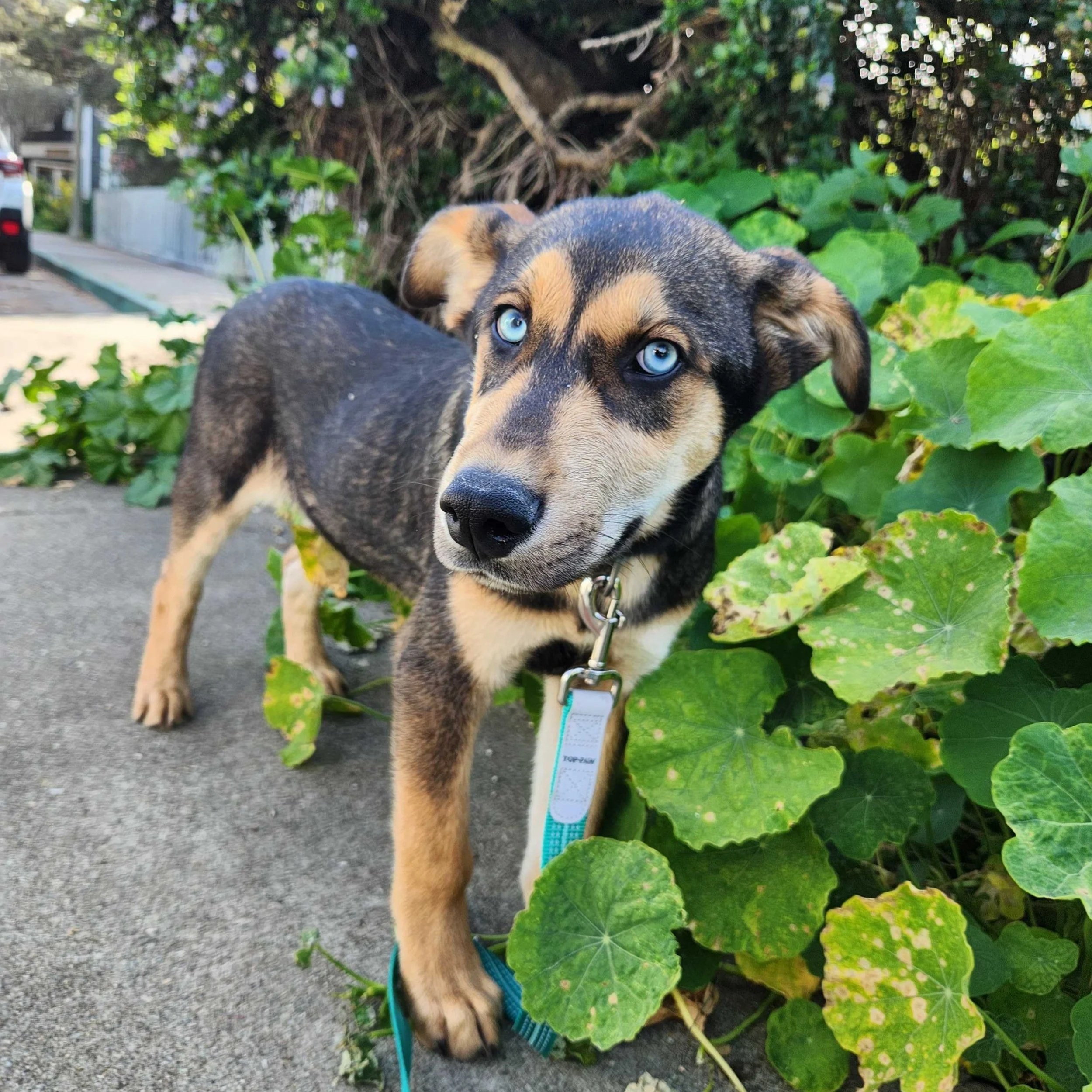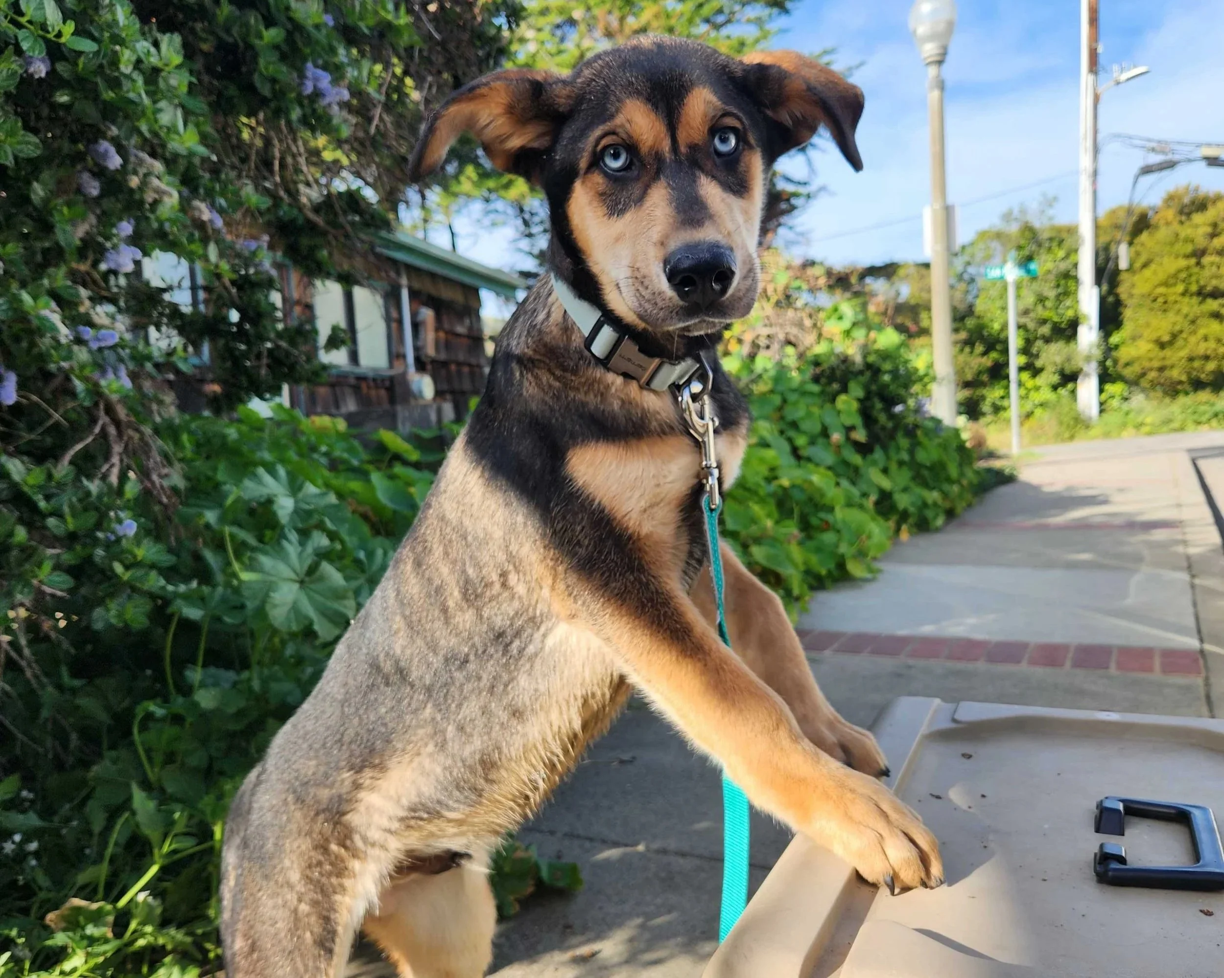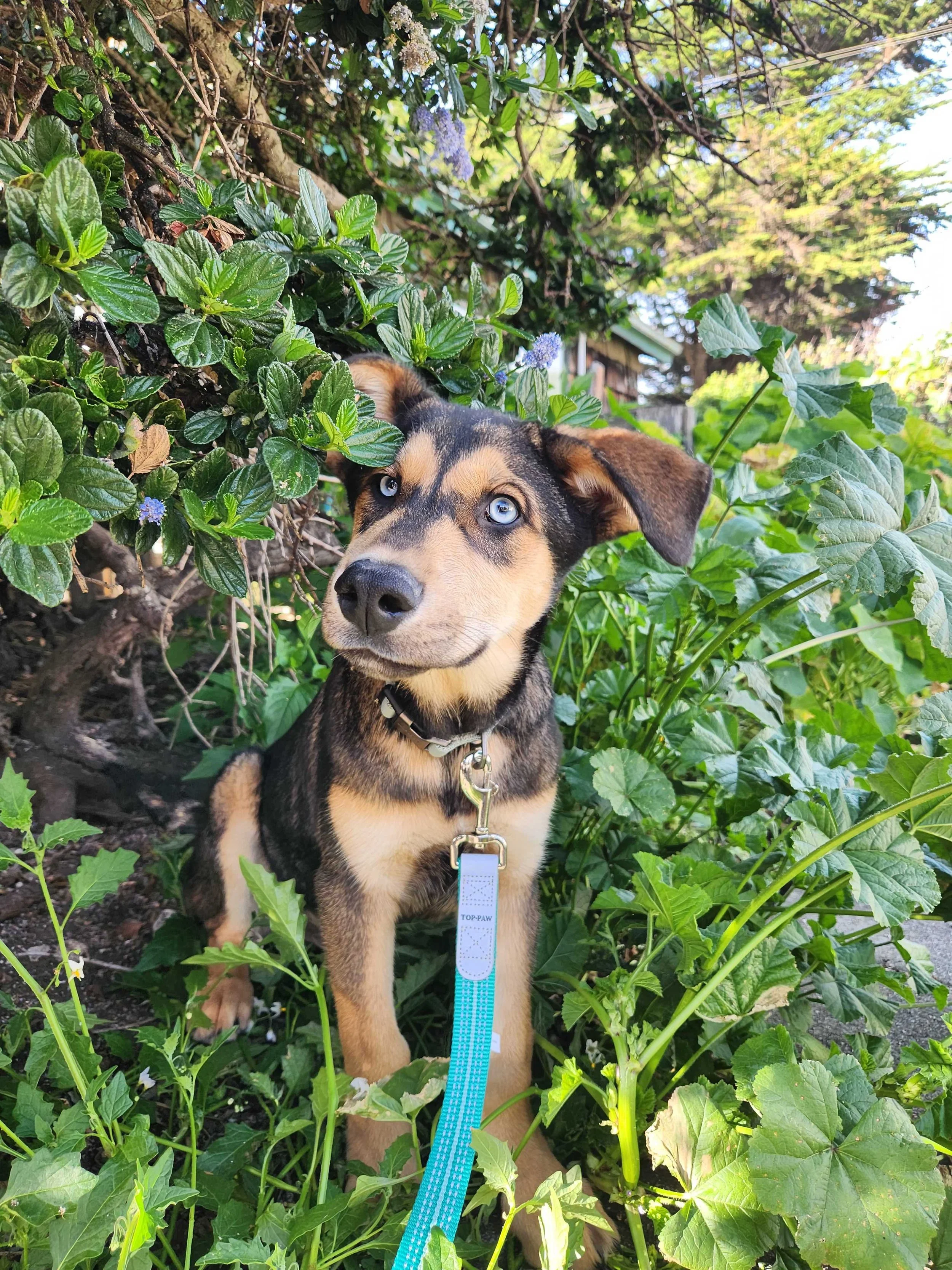 Scotch is the kind of puppy you can’t help but smile at. With his striking blue eyes and oversized puppy paws, it’s clear he’s going to grow into one seriously handsome dog. Right now, he’s all about the classic puppy life—playing hard, napping even harder, and exploring everything around him.